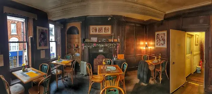 Wonderful 17th Century dining rooms, now a buzzy coffee shop with heaps of atmosphere. We’re a bit of a hidden gem and once you’ve found us you’ll love the atmosphere of our wood pannelled rooms. We’re based in the heart of Shrewsbury but our rooms are quiet and away from the bustle of the street below.