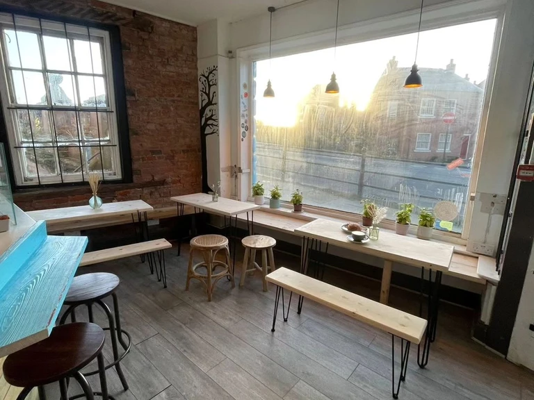 We’re a small shop, so you’re looking at space for your laptop and not much more. But our fantastic atmophere and great stuff and customers makes this a great spot for a bit of relaxed working. The people watching out onto The English Bridge is pretty good too!